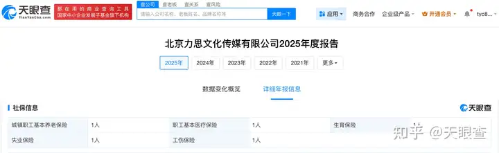 参保人数信息显示,2025年该公司参保人数为1人,此前该公司连续多年参保人数为0.