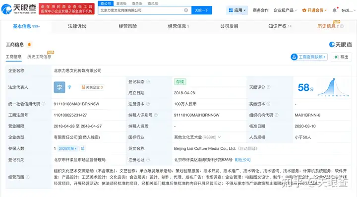 天眼查App显示,这次被点名的“力擎GEO优化系统”关联公司【北京力思文化传媒有限公司】成立于2018年4月,法定代表人为李某钟,注册资本100万人民币,经营范围包括组织文化艺术交流活动、文艺创作、承办展览展示活动等,由李某钟全资持股。