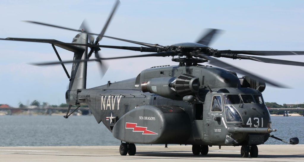 主力机型:MH-53E “海龙”(西科斯基,三发重型,美军最大舰载直升机)