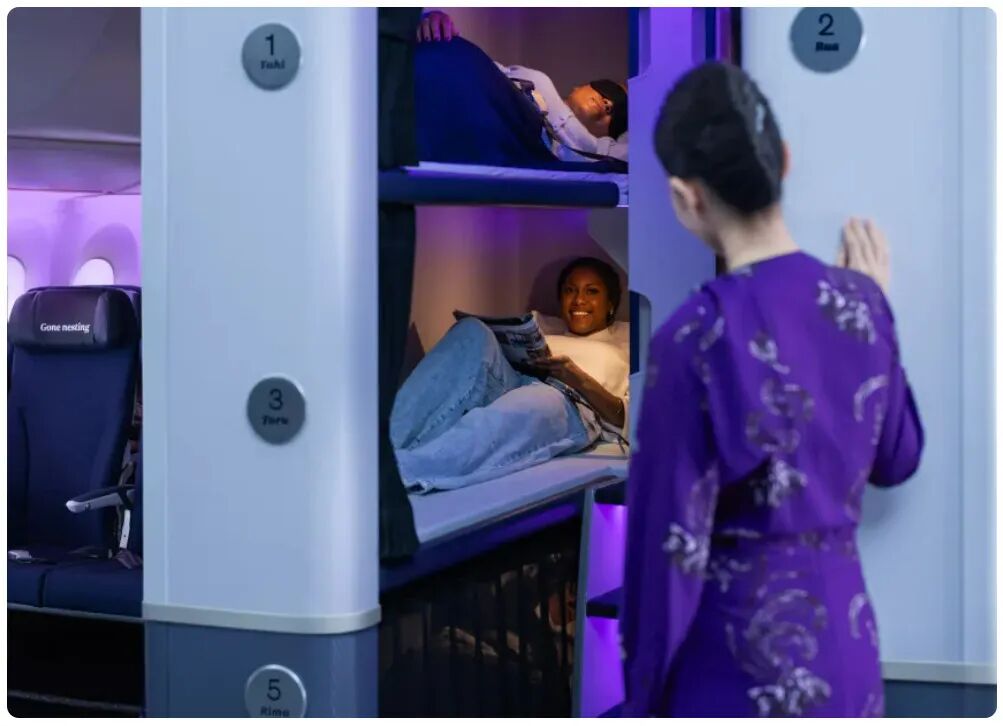 环球全球首创!新西兰航空波音 787-9“梦想客机”付费享用卧铺服务3 新西兰航空最新波音 787-9“梦想客机”的经济舱乘客,很快就能付费享用卧铺服务,在“上下铺”式的床位上平躺舒展身体,小憩数小时。 新西兰航空的这款“经济舱卧铺”产品名为 Skynest。针对新西兰航空部分从11月开始的航班,预订通道将于 5 月 18 日正式开启。 据新西兰航空披露,六个单独的卧铺空间呈“上下铺”式排列,每个空间内均配备床垫及寝...赞 (0)missli2026-04-16阅读(8)